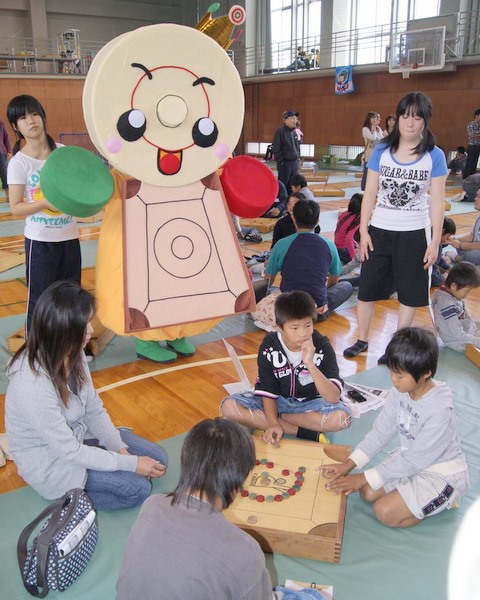 カロムのイメージキャラクター「カロム王子」の着ぐるみが、17日に滋賀大学(彦根市馬場1)で行われたカロム日本選手権大会に初登場し、子どもたちの人気を集めていた。